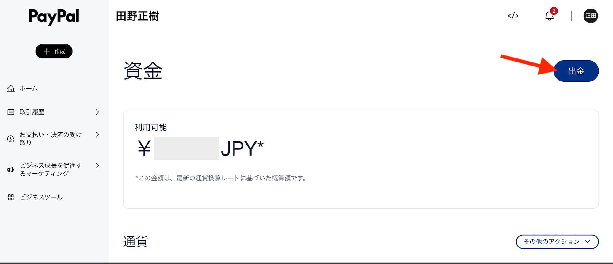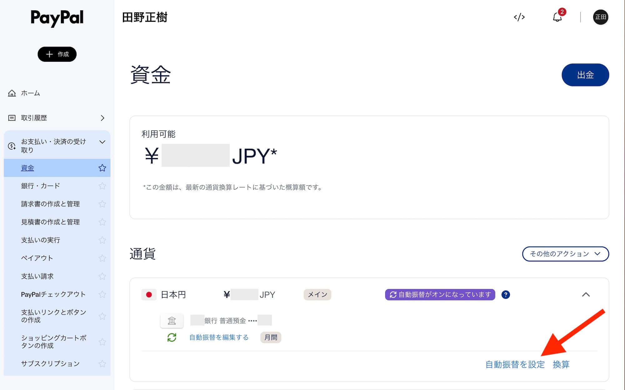 それでは、PayPalアカウントの残高を口座に入金する手順を解説します。
