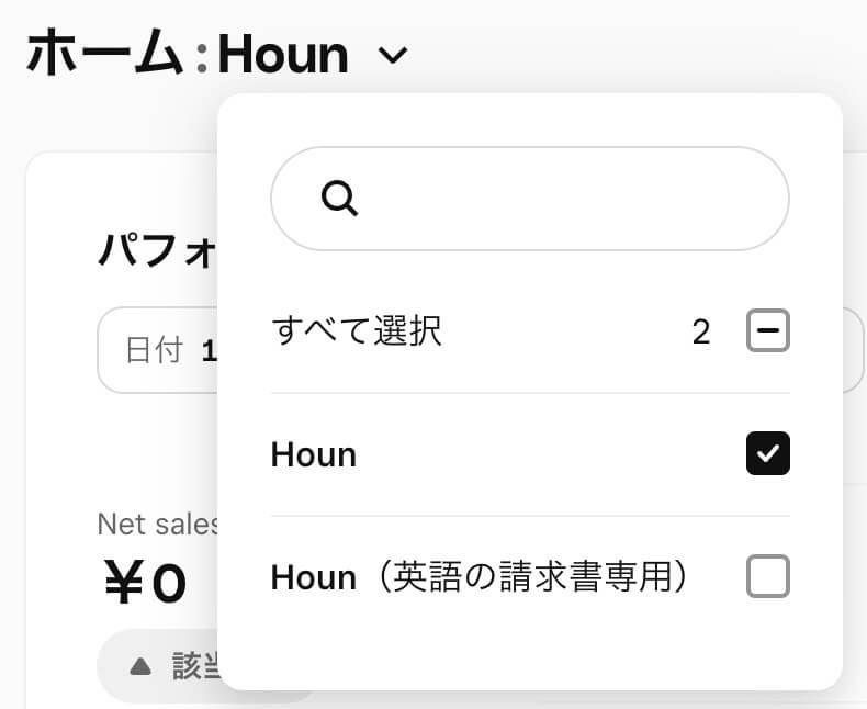 これを応用して”英語の請求書専用の店舗”を追加することで、ワンクリックで日本語 / 英語の切り替えが可能になります。