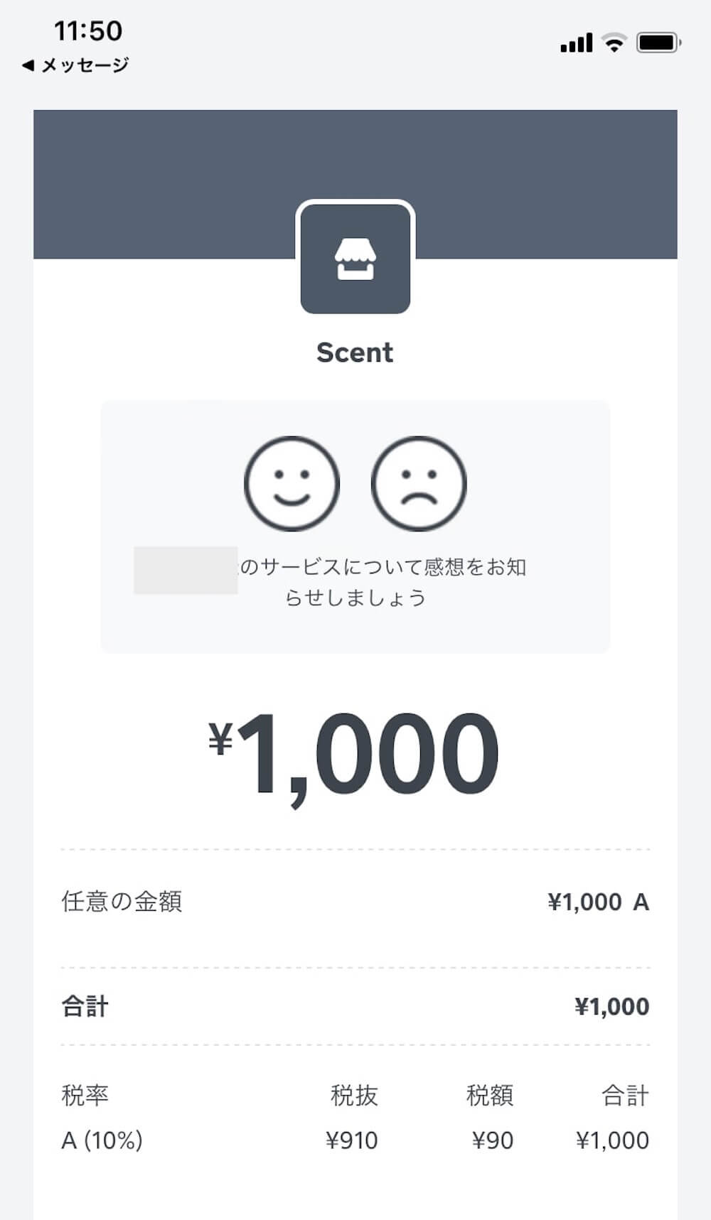 メールもしくはSMSでレシート発行可能